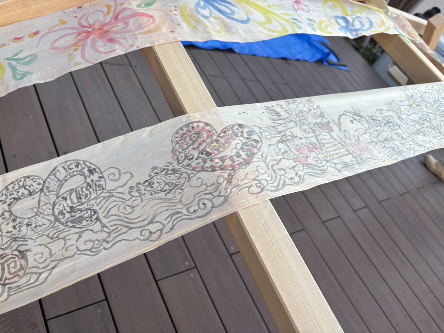 さらに、ヒノキ材に絵の具で自由に絵を描いて、自ら削るという遊び心のある体験は、多くのお子様に喜んでいただくことができました。