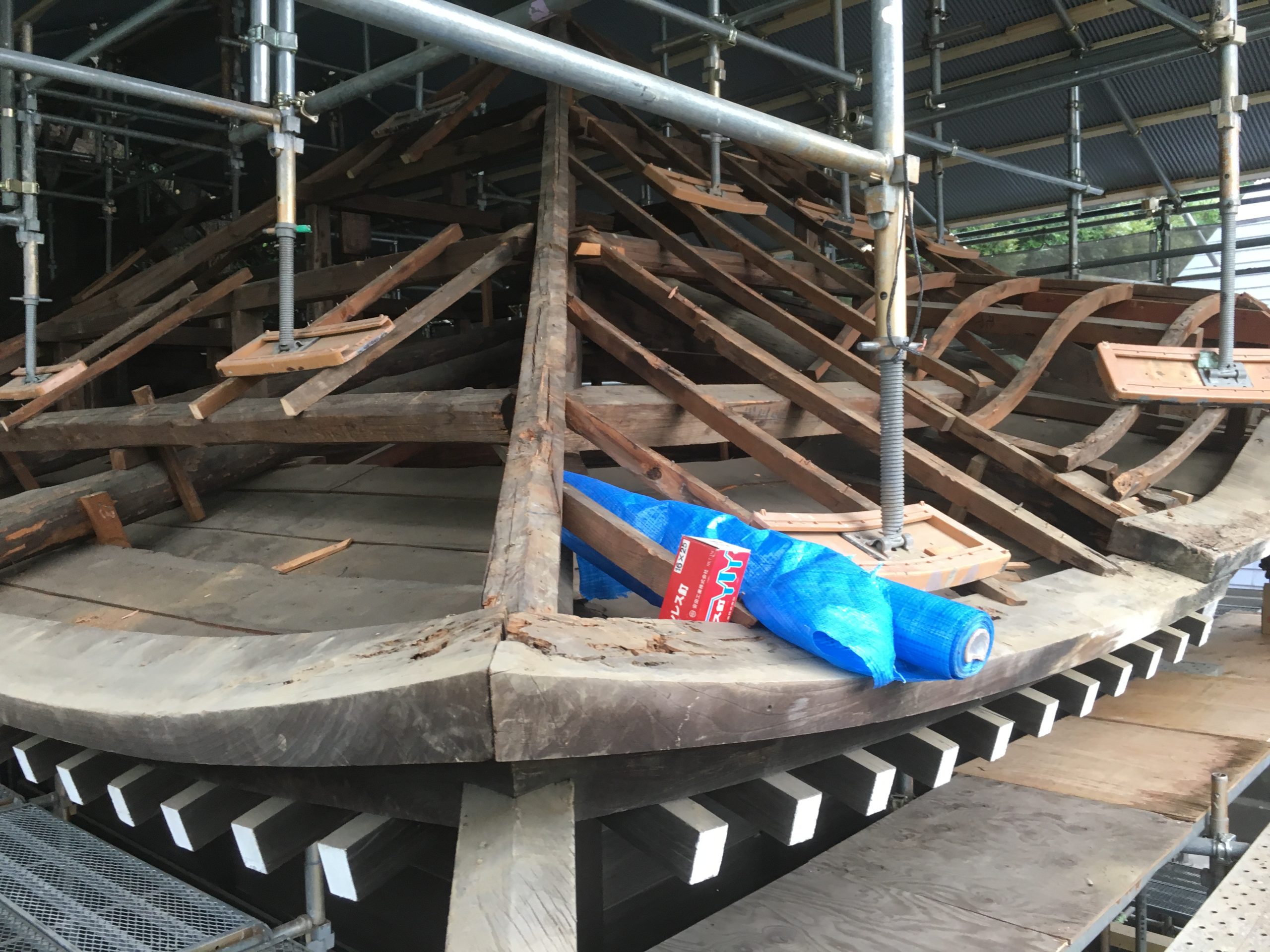 寄棟造りの屋根の下地材をすべて取り換えました。