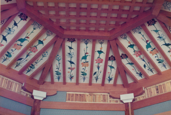 また、内陣・外陣の化粧天井板には、名絵師による美しい宝相華の天井絵が奉納されており、訪れる方々を優しく迎え入れる空間となっています。